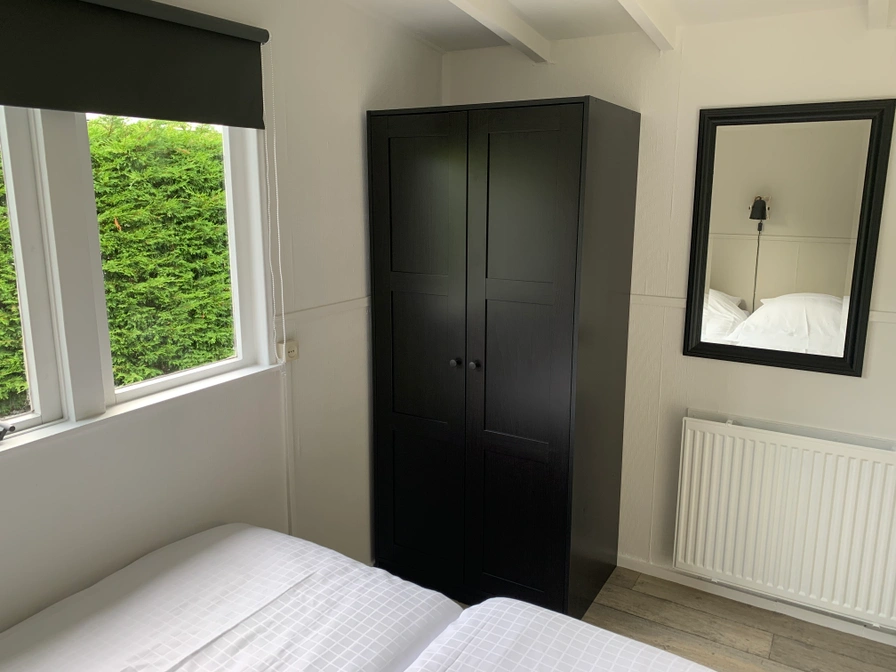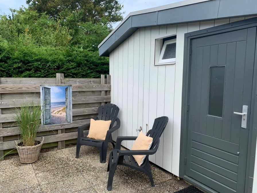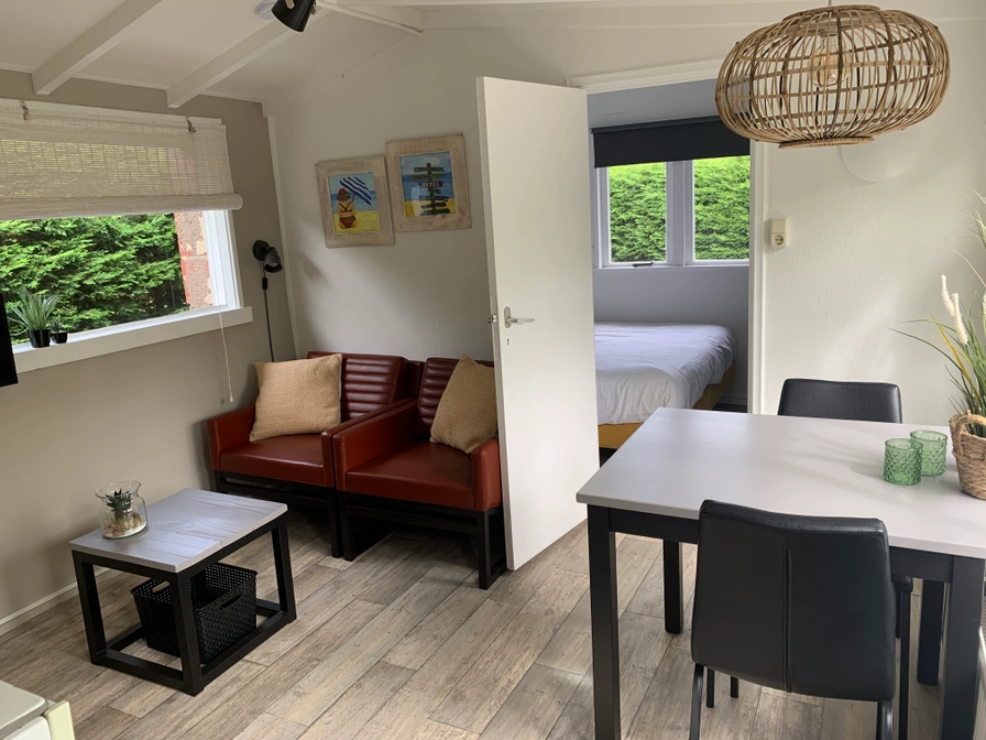 This simple but cosy, detached holiday home is located in a quiet spot in the park. The living room has two armchairs, a dining table with two chairs and a small TV. The kitchenette is equipped with a refrigerator and microwave and a Nespresso machine. There is a bathroom with bath, sink and toilet. The bedroom has two single box-spring beds. (80x200 cm) This house has a nice sheltered garden with a south-facing terrace.