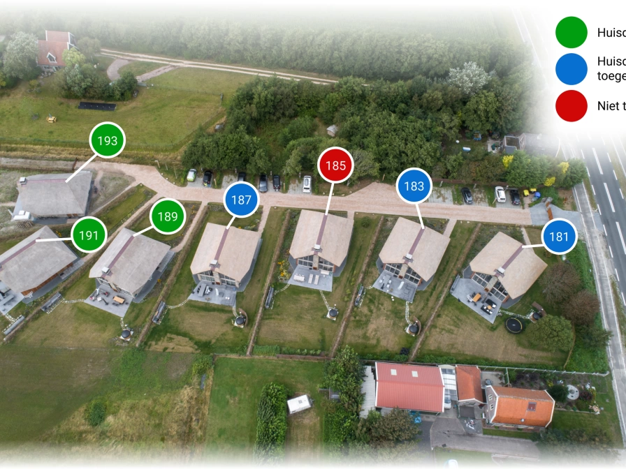 You have your own washing machine, dryer and children's furniture (cot and chair). The beds are made for you as standard and towels are ready for you. There is a charging point for an electric car and electric bicycles. Electricity from the zero energy houses is generated by solar panels that are hidden from view outside the villa park. Heating and cooling of the villa is realized by a heat pump. By means of underfloor heating and cooling, a pleasant temperature can also be reached in the summer that is 5 degrees lower than the outside temperature.