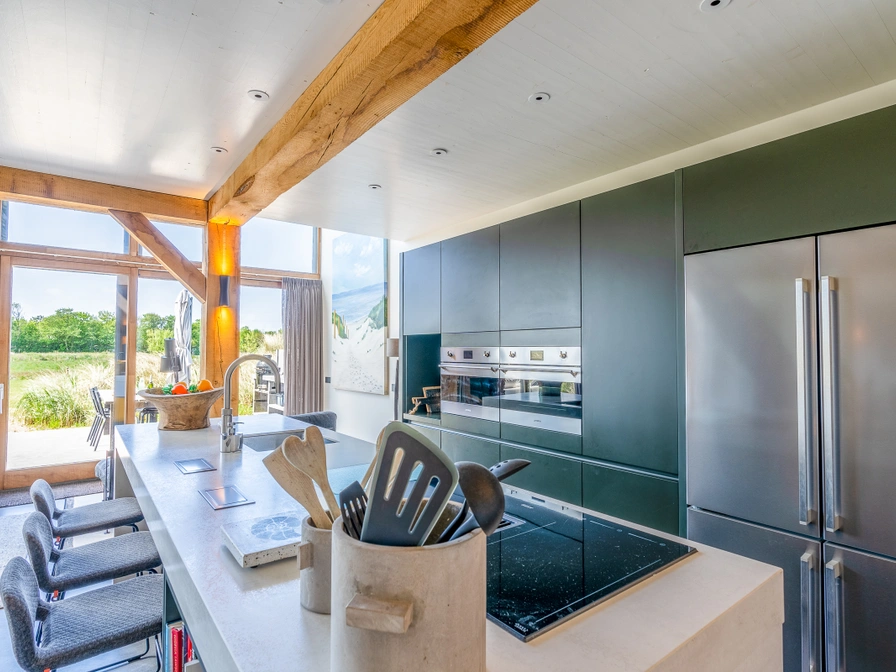 The small-scale Villa Park Buytenplaats Texel is located just outside the seaside resort of De Koog and close to the Duinen van Texel National Park. The shape of the villas is inspired by the authentic Texel sheep shed. The luxurious and sustainable holiday villas are fully and tastefully furnished and have an unobstructed view of the land behind. The village of De Koog is 5 minutes by bike. Here you will find shops, cafes, restaurants and terraces. You can cycle to the wide North Sea beach within 10 minutes. In the immediate vicinity you will find various attractions and sights, such as museums, riding stables and an indoor swimming paradise. Beautiful cycling and walking routes run through the National Park.