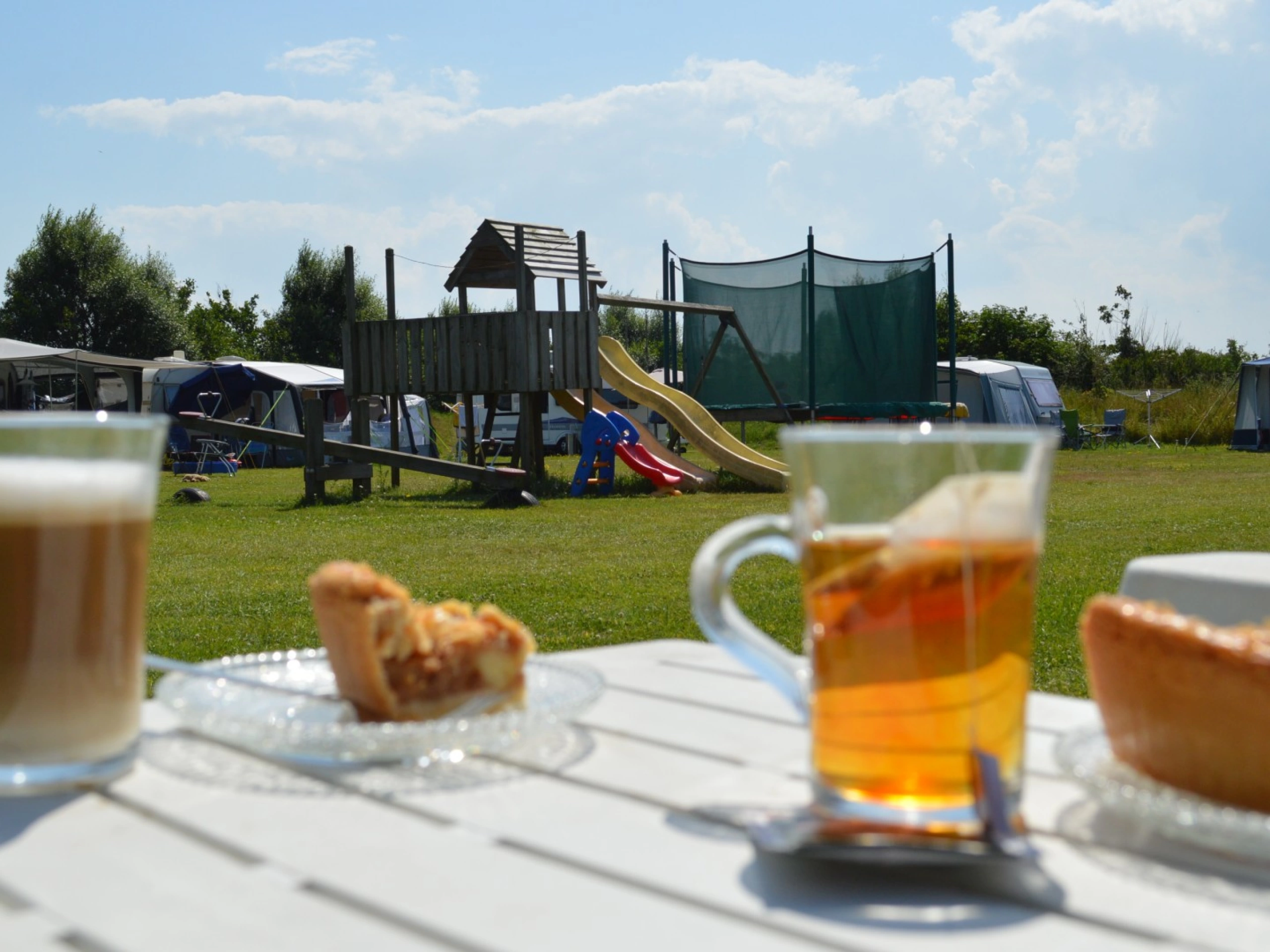 The campsite has 15 spacious camping pitches. Every pitch has a water and electricity connection with 10 amps. The camping pitches are on an L-shaped field with a playground for the children in the middle. This way you can keep an eye on the children from your camping spot. The sanitary building is equipped with two showers, four washbasins, three toilets, two urinals and a chemical toilet. There is also washing-up facilities.