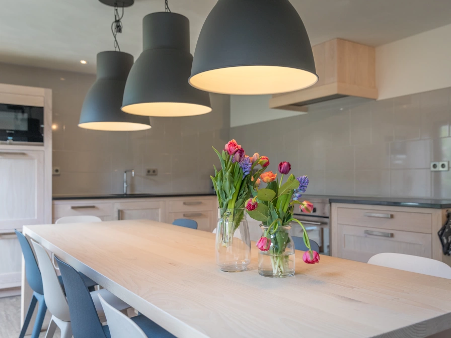 Entrance through spacious central hall. Large open kitchen with lounge sofa, TV and a large dining table by the patio doors to the garden. The kitchen is equipped with a 5-burner induction hob, Quooker tap, fridge with freezer compartment, oven, microwave, dishwasher, Nespresso, filter coffee maker, blender and toaster. There is a second living room / game room with TV / Playstation (PS4). The house has five spacious bedrooms, each with two single beds. There are three bathrooms, each with a (walk-in) shower and toilet. The two large bathrooms have a double sink. There is also an additional separate toilet. A washing machine and tumble dryer are at your disposal. There is covered seating at the front door. At the rear of the house - accessible through the patio doors in the kitchen - you will find the sunny, enclosed garden with plenty of privacy.