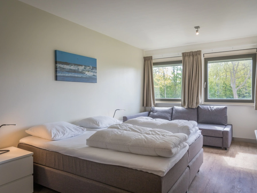 This semi-detached, large bungalow is located in a quiet residential area on the edge of De Koog and offers a view of a park. The beach, the forest and the dunes are within walking distance. Various restaurants, shops, supermarkets and bicycle rental shops are also within walking distance. It is a centrally located base for exploring the island of Texel. Walking or cycling you can enter the National Park Duinen van Texel, which runs along the entire west coast. You will find beautiful cycling and hiking trails.