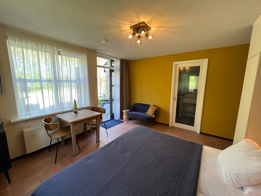 A 2-person corner room on the ground floor. This Plus room is slightly larger than the terrace room and has an extra bench. Outside you will find your own (private) terrace where you can enjoy the Texel sea air.