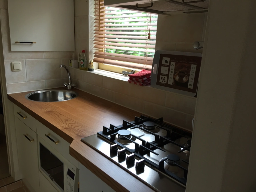 The cozy living room has a sitting area with TV. There is a conservatory with dining area. The small kitchen is equipped with a combi microwave, refrigerator with freezer, coffee maker, Senseo and kettle. The bedroom with 1 double bed (140 x 200) and TV is accessible through a sliding door. The bathroom has a shower and toilet. This cozy holiday home has a garden with a terrace. Garden furniture is available.