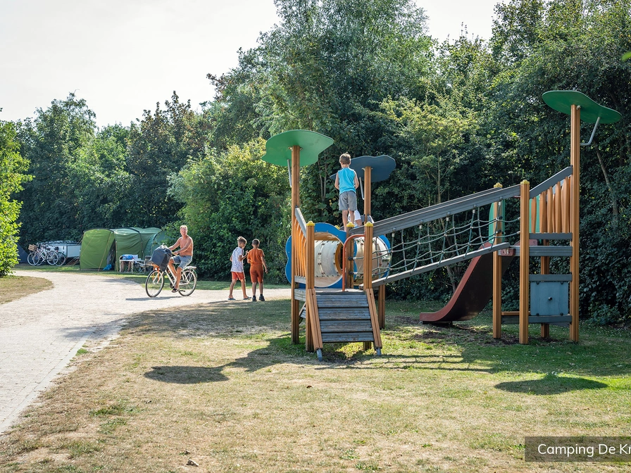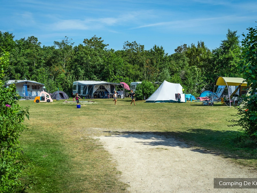 The 'Standaardplaats blauw' (Standard Blue pitch) is located on the edge of the park, next to the Krimbos. The Standard pitch has electricity (10 amps), cable TV connection, water and sewer connection and is intended for placing a tent or caravan with an additional tent (max. 4 m²). The heated sanitary facilities are located near the parking lot. Water taps are close by.
