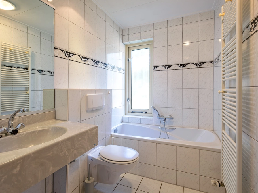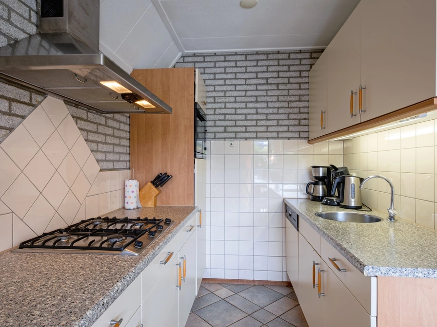 The living room of this detached holiday home has a sitting area with TV and a dining area and underfloor heating. The open kitchen is equipped with a combination microwave, fridge freezer and dishwasher. There is a bedroom with 2 single beds. The bathroom has a bath and separate shower. The toilet is separate. Upstairs are two bedrooms, each with 2 single beds. The storage room is equipped with washing machine and dryer. This holiday home has a terrace with garden furniture.