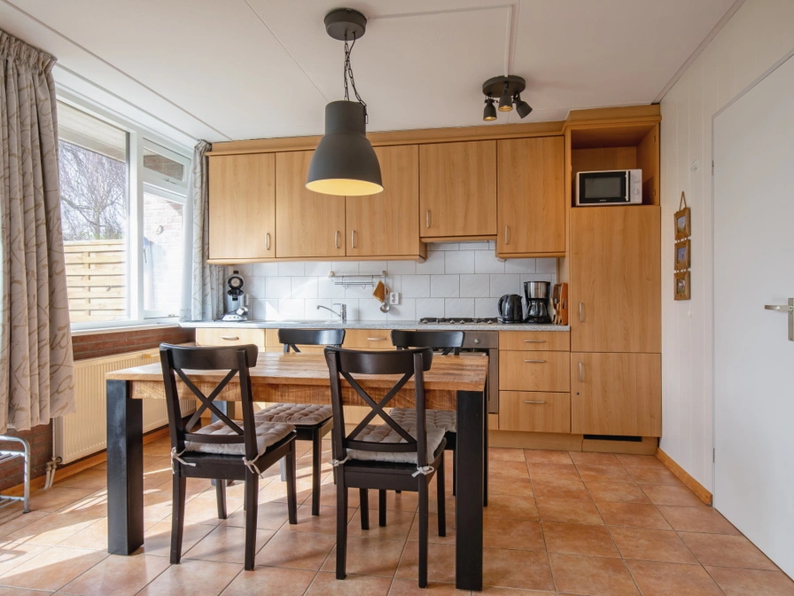 This holiday home is located in the quiet bungalow park Slufterhoek, in the north of Texel. You will be staying here near the nature reserve De Slufter, where the sea has free rein and special plants grow. Through De Slufter you can walk to the vast North Sea beach in 20 minutes. The nature reserve De Muy is also nearby. Here you can take beautiful walks. From your holiday address it is 6 kilometers to De Cocksdorp, the northernmost village on Texel. The seaside resort of De Koog is also 6 km by bike, but then to the south. Beautiful cycle routes through the dunes lead to both villages and you will find shops, terraces and restaurants there. In the immediate vicinity you will find a restaurant (750m) and various attractions, such as the airport, parachuting center and ice cream farm Labora.