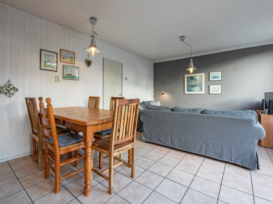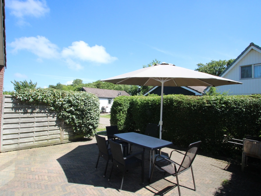 The living room of this semi-detached bungalow has a sitting area with cable TV, radio/CD player and a dining area. The open kitchen is equipped with a fridge with freezer, combination microwave and dishwasher. There is a coffee maker, a Senseo and a toaster. There are two bedrooms with two single box-spring beds each. The bathroom has a shower and sink. There is a separate toilet. This bungalow has a garden with terrace. Terrace chairs and sun beds are available. In the garden there is a shed with a power point.