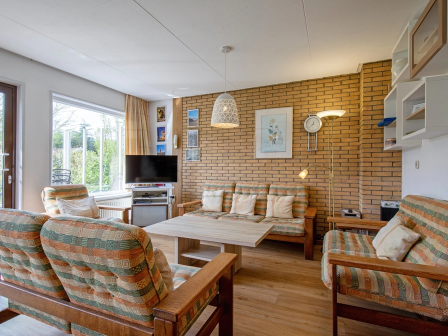 The living room of this detached holiday home has a sitting area with TV and a dining area. The open kitchen is equipped with a refrigerator with freezer, microwave, oven and dishwasher. There are three bedrooms, one with a single bed. The other two bedrooms each have 2 single beds. The bathroom has a shower and toilet, there is also a second separate toilet. This bungalow has a garden with terrace. Garden furniture is available.