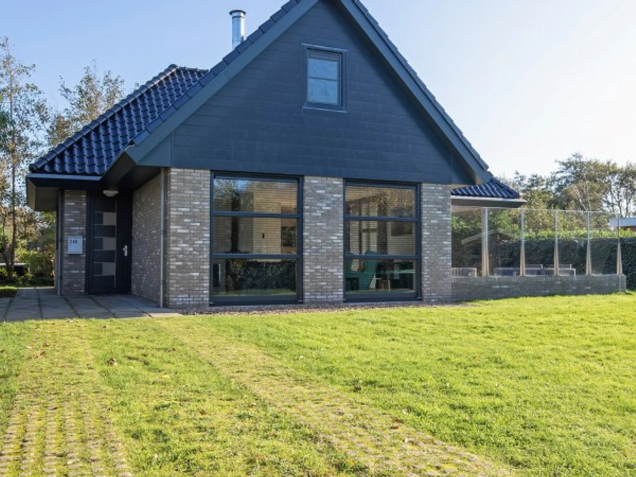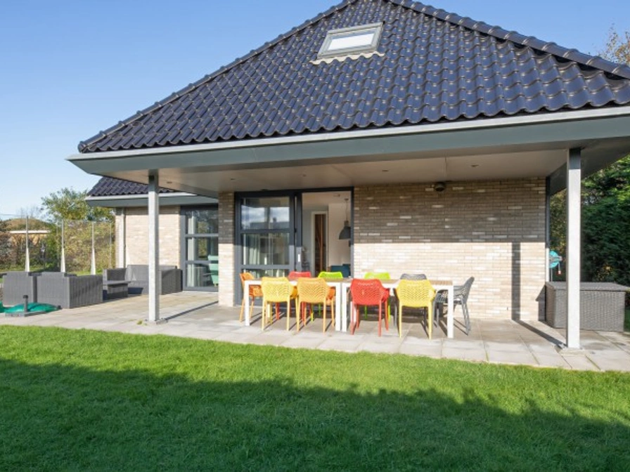 The living room of this detached holiday home has a sitting area with TV and a dining area. The open kitchen is equipped with an induction hob, large fridge, freezer, Senseo, microwave, coffee maker and oven. In the utility room there is a washing machine, dryer and airfryer. There is a bedroom with two single box-spring beds with private bathroom with walk-in shower and sink. The toilet is separate. On the upper floor there are two bedrooms with 2 single box-spring beds each. The second bathroom has a walk-in shower, double sink and toilet. This house has a garden with a partially covered terrace. Garden furniture is available.