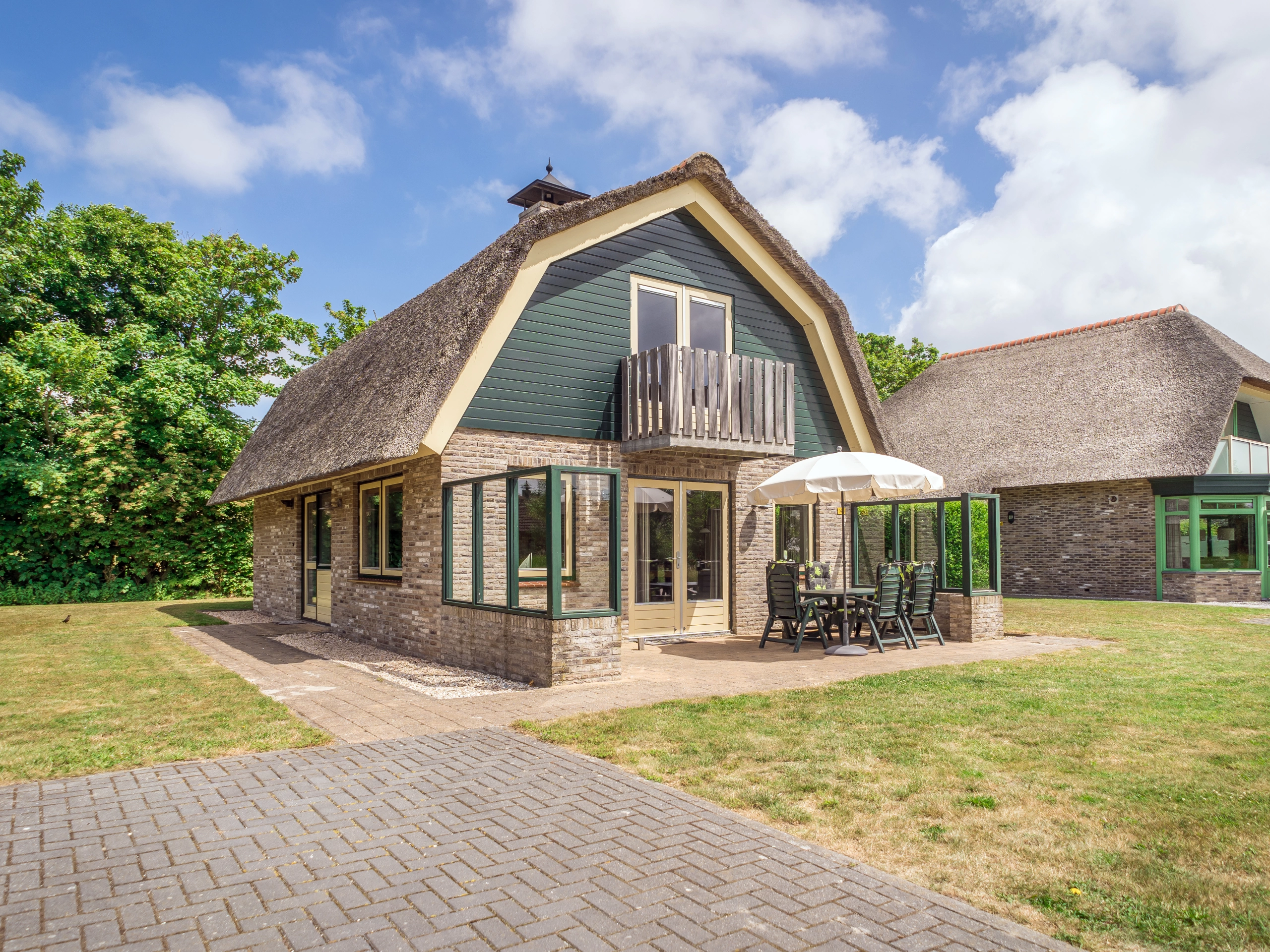 The living room has a sitting area with a decorative fireplace (gas), TV, radio and DVD / CD player. The open kitchen is equipped with a combination microwave, refrigerator with freezer, dishwasher, coffee maker, Senseo, kettle, toaster, juicer and hand blender. There is a dining area. On the ground floor there is a bedroom with 2 single box-spring beds, TV and safe. The adjoining bathroom has a whirlpool, walk-in shower and bathroom furniture. There is a toilet in the hall. Upstairs are two bedrooms with 2 single box-spring beds and TV. One of the bedrooms has a balcony. The bathroom has a double steam cabin / shower, bathroom furniture and toilet. There is a washing machine and dryer in the basement. This villa has a south-facing terrace. Garden furniture is available.
