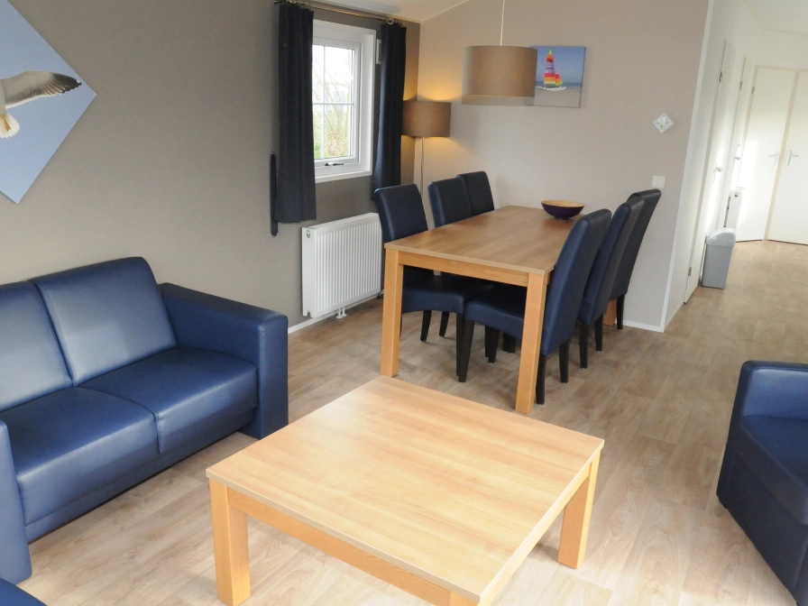 The living room of this detached Villetta has a sitting area with TV. The kitchen is equipped with a microwave and dishwasher. There is one bedroom with a double bed, the second bedroom has a single bed and the third bedroom has a single bed and a bunk bed. In the bathroom you will find the shower, sink and toilet. This mobile home has a veranda.