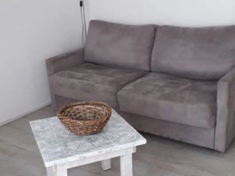 The living room has a sitting area with 1 double sofa bed and a dining area. The open kitchen is equipped with a refrigerator with freezer and a combination microwave. There is a bedroom with 2 single box-spring beds. The bathroom has a bath, sink and toilet. This apartment has a terrace with garden furniture.
