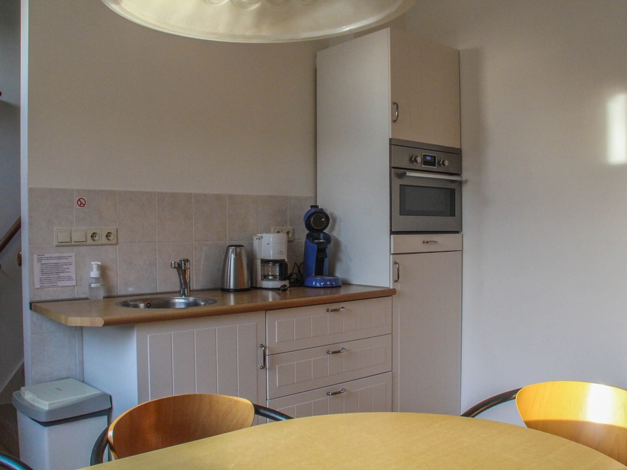 Downstairs is a bedroom with sofa bed. Here you can also sit and watch TV. Bathroom with shower and toilet downstairs. There are two bedrooms on the upper floor, one with two single beds (90 x 200). The other bedroom has three single beds (90 x 200). There is a separate toilet upstairs. Downstairs is a table with chairs for breakfast. At the rear of this Bed no Breakfast is a small terrace where you can sit outside.