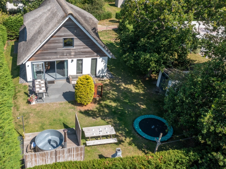 The living room of this villa has a sitting area with gas fireplace, smart TV and music system. There is a dining area with a dining table for 8 people. The open kitchen is fully equipped with various built-in appliances, such as a refrigerator with freezer, combination microwave, dishwasher and equipped with a coffee machine, filter coffee maker, toaster and sandwich maker. On the ground floor there is a bedroom with 2 single beds with its own bathroom with walk-in shower, sink and toilet. There is also a separate toilet on the ground floor. There is a washing machine and dryer in the storage room. The other bedrooms are on the top floor. All bedrooms in the house have comfortable box-spring beds and a TV. There is a bathroom with a 2-person Finnish sauna, a spacious walk-in shower with sun shower, a bath with whirlpool function and a bathroom furniture. There is a separate toilet. This villa has a spacious garden with lots of privacy. The terrace is equipped with a garden fireplace, dining set, lounge set and parasol. There is an 8-person wood-fired hot tub and an in-ground trampoline for the children. The terrace faces south.