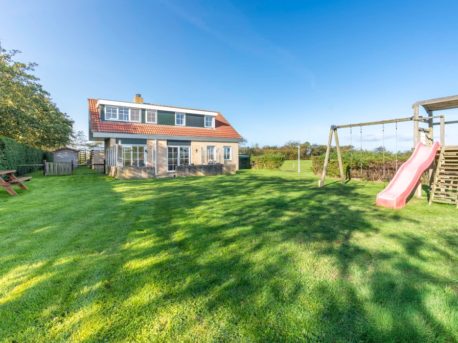There is satellite dish. There is ample parking space in front of the house and a carport for parking your car or bicycles. Play equipment in the garden (two swings and a playhouse with slide) and there is a playing field with two football goals behind the enclosed garden.