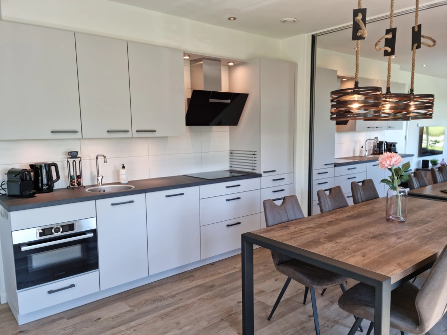 Familiehuis Zevenbergen is a 12-person semi-detached holiday home. The holiday homes Eierland and De Slufter form family home Zevenbergen due to the open partition wall. The cozy living room has 2 flat screen TVs with extensive channels, a radio and 2 extensive kitchens with a dishwasher, a combi microwave, fridge with freezer, a kettle, a Nespresso coffee machine and a regular filter coffee machine. On the ground floor of this holiday home are 2 bedrooms, 2 bathrooms with rain shower and 2 separate toilets. On the upper floor there are 4 bedrooms, 2 bathrooms, both with a lovely bath, separate rain showers and 2 separate toilets. All bedrooms have comfortable box-spring beds with duvets and pillows. All bedrooms have their own flat screen TV. This holiday home has a terrace with garden furniture.
