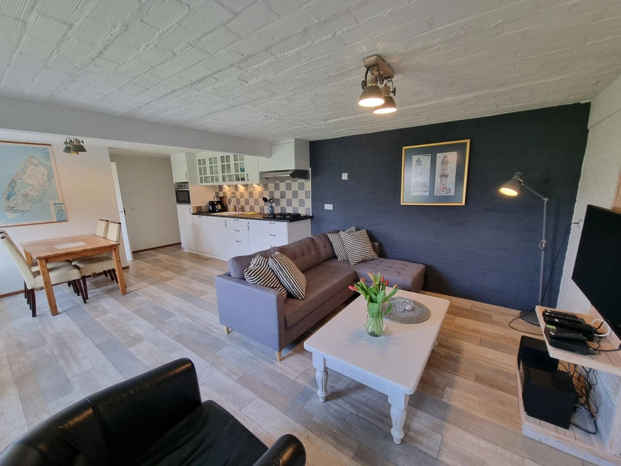 The living room of this semi-detached holiday home has a seating area with TV, radio and DVD/CD player. There is also a dining area. The open kitchen is equipped with a refrigerator including freezer, dishwasher and a combination oven. On the ground floor there is a bathroom with shower and sink. There is a separate toilet. On the top floor there are two bedrooms with 2 single beds each. Holiday home Westzicht has a terrace with garden furniture.