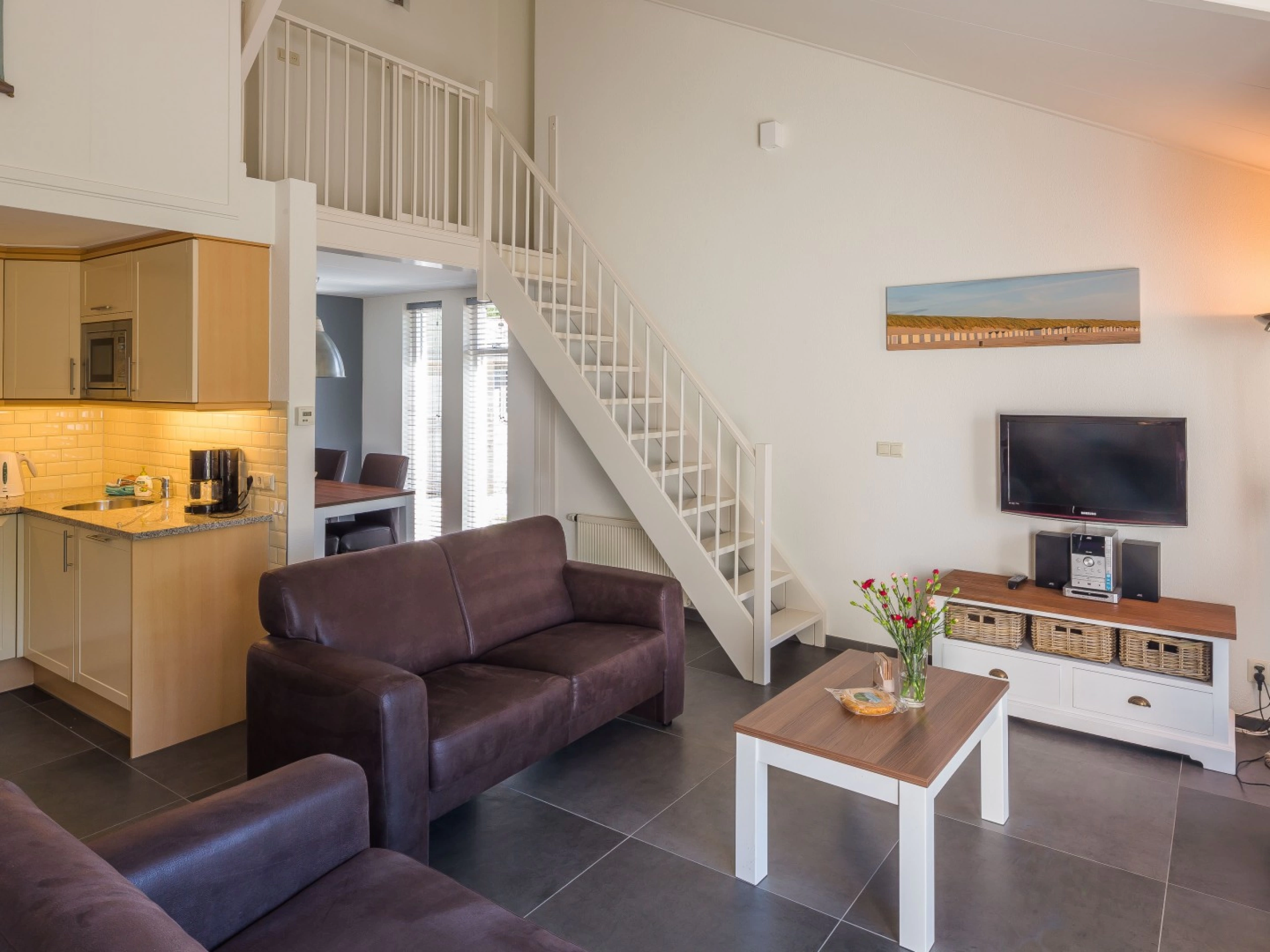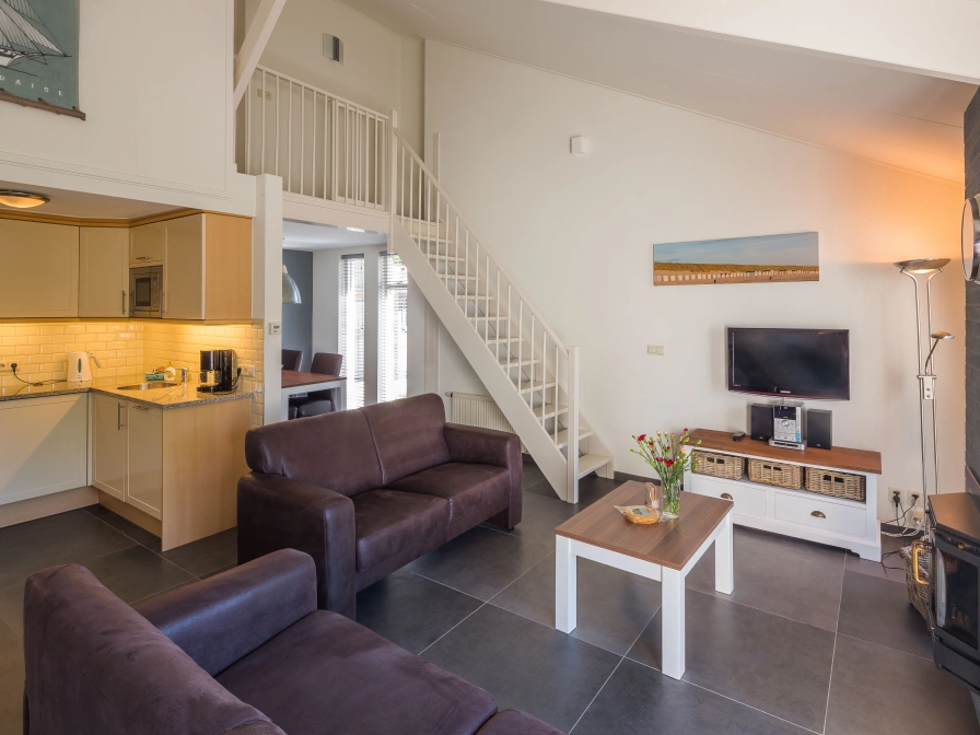 The open kitchen of this semi-detached holiday home has a microwave, separate small oven, dishwasher, filter coffee maker, Senseo and toaster. In the living room you will find a sitting area with a fireplace, flat screen TV, radio/CD player and DVD player. There is also a dining area. On the ground floor is a bathroom with walk-in shower, sink and toilet. In the storage room there is a washing machine and dryer. On the upper floor are two bedrooms, one with a double twin bed. The other bedroom has 2 single beds. This holiday home has a spacious terrace and a completely enclosed garden by means of a metal fence. Garden furniture is available as well as a lounge area.