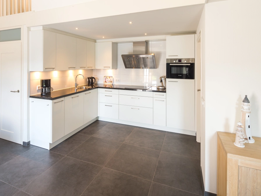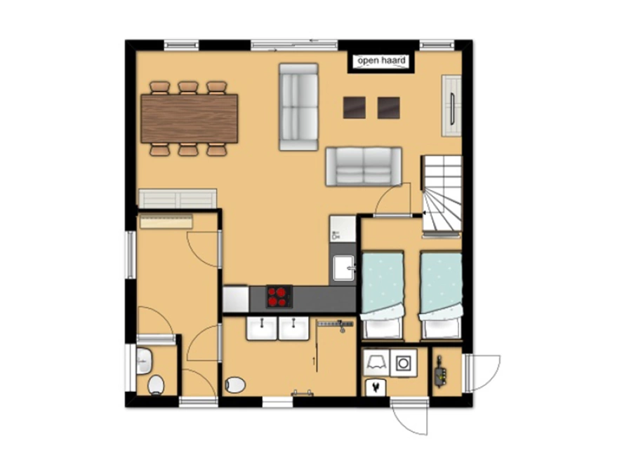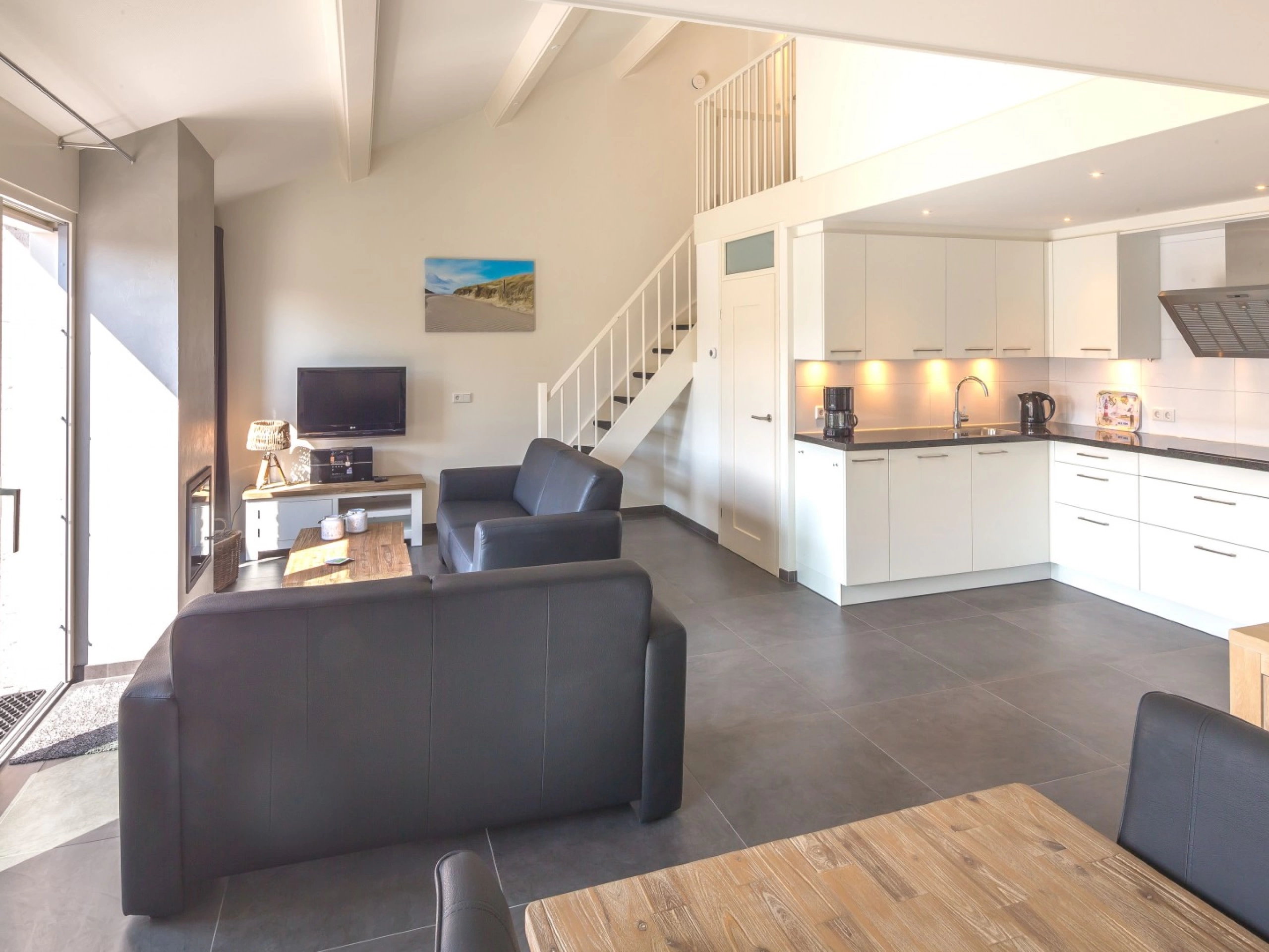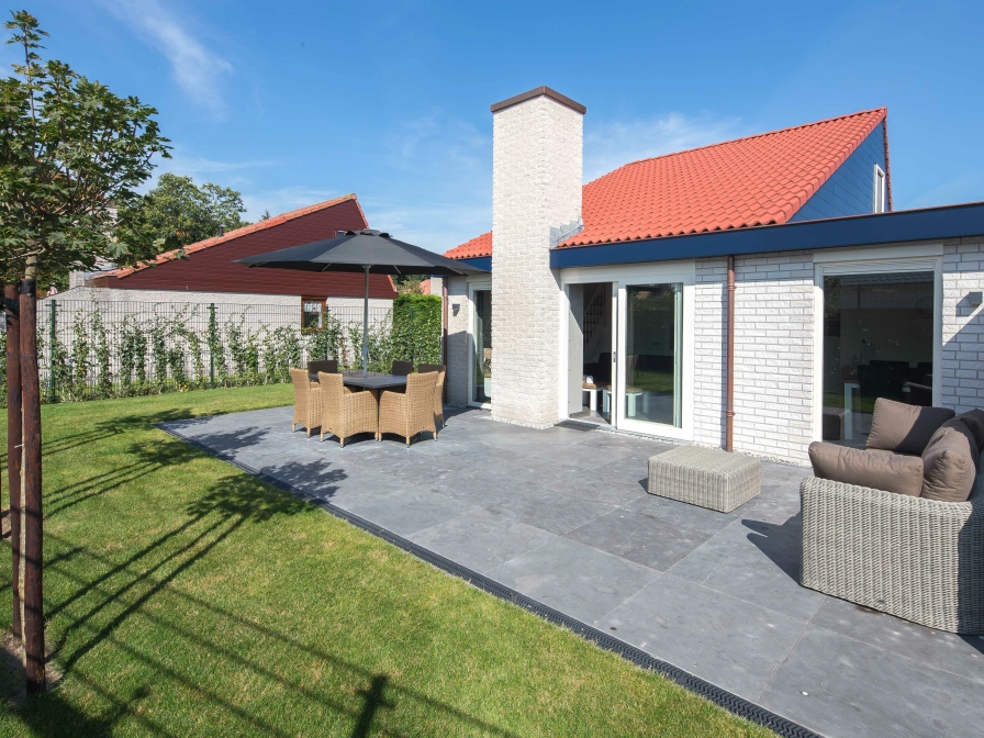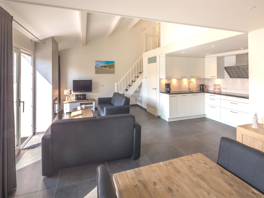 The spacious living room of this detached holiday home has a sitting area with a fireplace, flat screen TV, radio / CD player and DVD player. There is also a dining area. The open kitchen is equipped with an induction hob, combination microwave, dishwasher, filter coffee machine, Senseo and toaster. On the ground floor is a bedroom with 2 single box-spring beds and a TV. The bathroom has a walk-in shower, double sink and toilet. There is a second separate toilet. There is a washing machine and dryer in the storage room. Upstairs are two bedrooms, one of which has a double box-spring bed and a TV. The other bedroom has 1 single box-spring bed and TV. This holiday home has a spacious terrace and a fully enclosed garden through a metal fence. Garden furniture is available.
