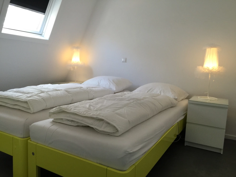 The open kitchen of this semi-detached holiday home is equipped with a microwave, oven and dishwasher. The living room has a sitting area with flat screen TV and radio / CD player. There is also a dining area. The bathroom with shower and toilet is on the ground floor. There is a washing machine and dryer in the storage room. Upstairs are two bedrooms, each with 2 single beds. This holiday home has a garden with a terrace. Garden furniture is available.