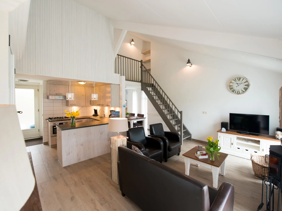The open kitchen of this beautiful, semi-detached holiday home is equipped with a dishwasher, combination microwave, coffee maker and Senseo. The living room has a sitting area with a fireplace, LED TV, DVD player and radio / CD player. There is also a dining area. On the ground floor there is a bathroom with a whirlpool and sink. Upstairs are two bedrooms with 2 single beds each, including bed linen. One of the bedrooms has a TV. This holiday home has a sheltered, enclosed garden with a terrace. Garden furniture is available.