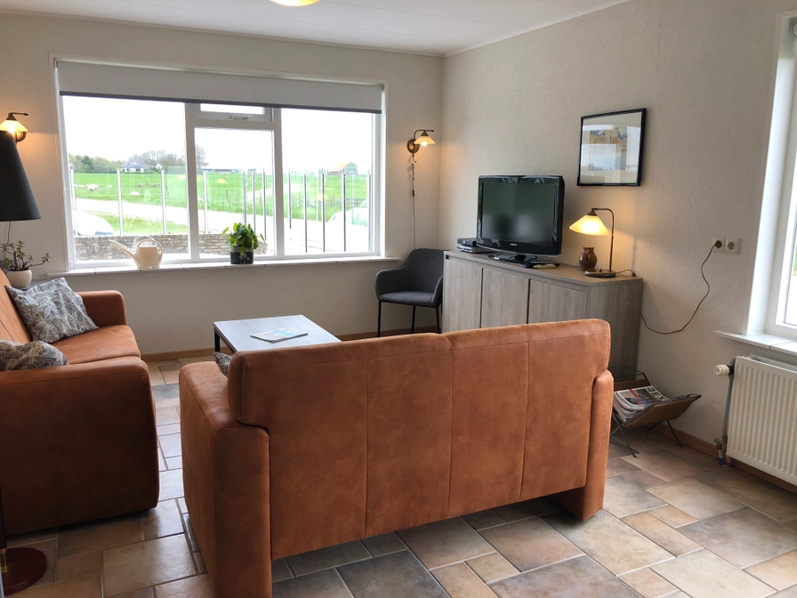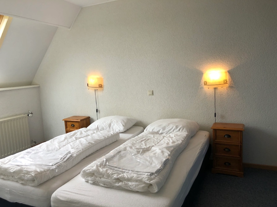 The living room has a sitting area with TV and DVD player. The open kitchen is equipped with a refrigerator, combination microwave and dishwasher. There is also a dining area. The bathroom has a shower and sink. There is a separate toilet. On the top floor there are two bedrooms, one with 2 single box-spring beds and a washbasin. The other bedroom has 3 single beds. Apartment Grietje has a terrace with garden furniture.
