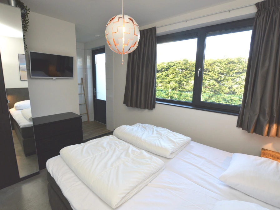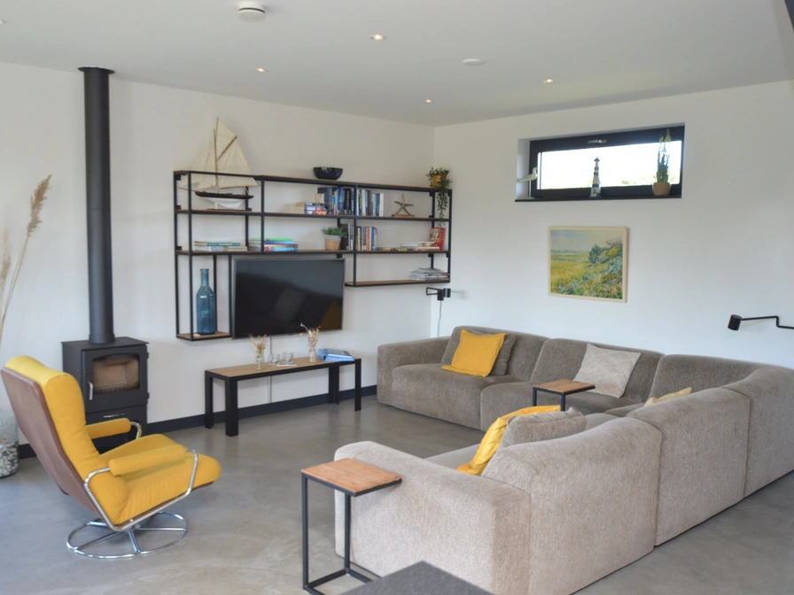 This comfortable holiday home is detached and energy-neutral. The living area has a sitting area with a wood stove and a separate TV corner with smart TV and cable connection. The kitchen is fully equipped with a filter coffee machine, Nespresso machine, combi microwave, dishwasher and an induction hob. There are three bedrooms, one on the ground floor and two on the first floor. All bedrooms have two single box-spring beds with single (synthetic) duvets. Adjacent to the downstairs bedroom you will find a bathroom with shower and sink. There is also a separate toilet here. On the first floor is a second bathroom with shower, toilet and sink. There is a sauna opposite the bathroom. Indoor storage room with washing machine and dryer. This holiday home has a spacious enclosed garden with outdoor shower and a covered terrace. Garden furniture is available.