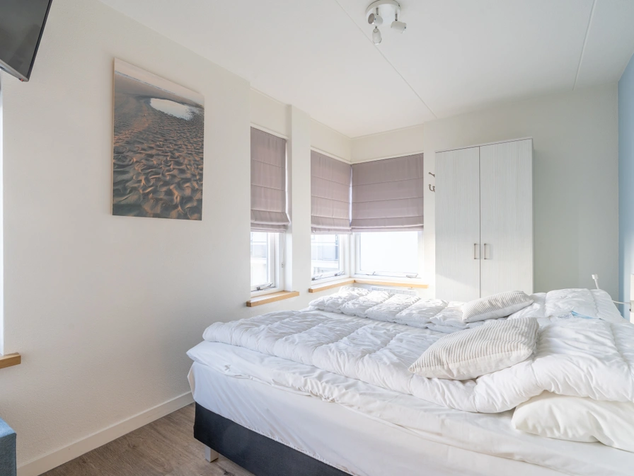 This apartment is located on the second floor and offers a view over De Koog. The living room has a sitting area with TV and music system. The open kitchen is equipped with a dishwasher, microwave and various coffee machines. You will also find a dining area with a dining table for 4 people. There are two bedrooms, one with a double box-spring bed and TV. The other bedroom has 2 single box-spring beds. The bathroom has a double sink and walk-in shower. The toilet is separate. This apartment has an east-facing balcony. Garden furniture is available.