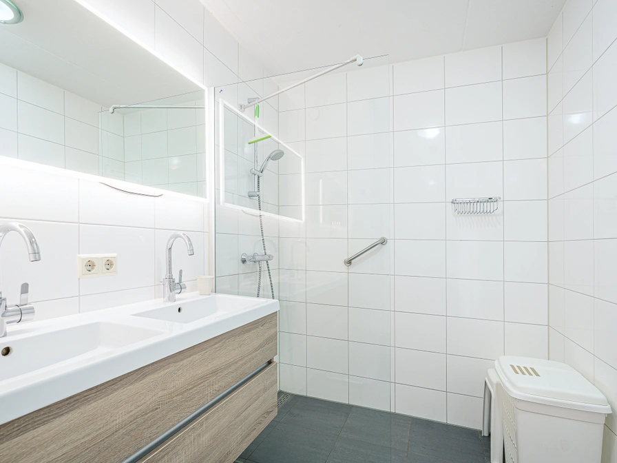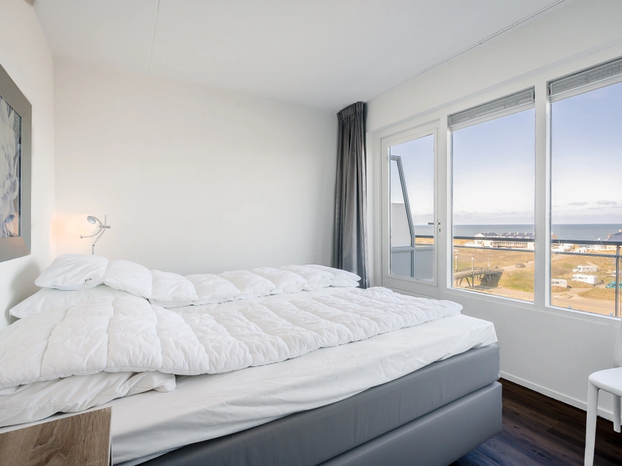 This apartment is on the second floor and offers a view over the North Sea. The living room has a sitting area with digital LCD TV, DVD player and radio. The open kitchen is equipped with a dishwasher, microwave, kettle, coffee maker, Senseo and a dining area. There are two bedrooms, each with 2 single beds. The bathroom has a walk-in shower and double sink. The toilet is separate. This apartment has a west-facing balcony. Garden furniture is available.