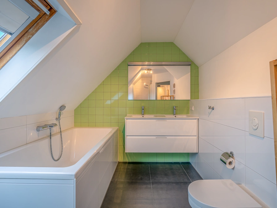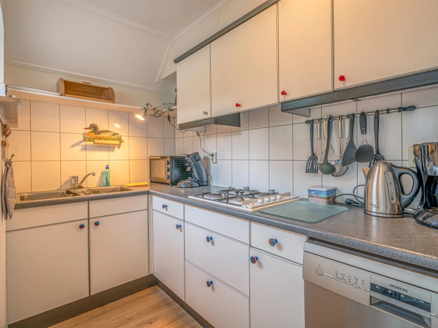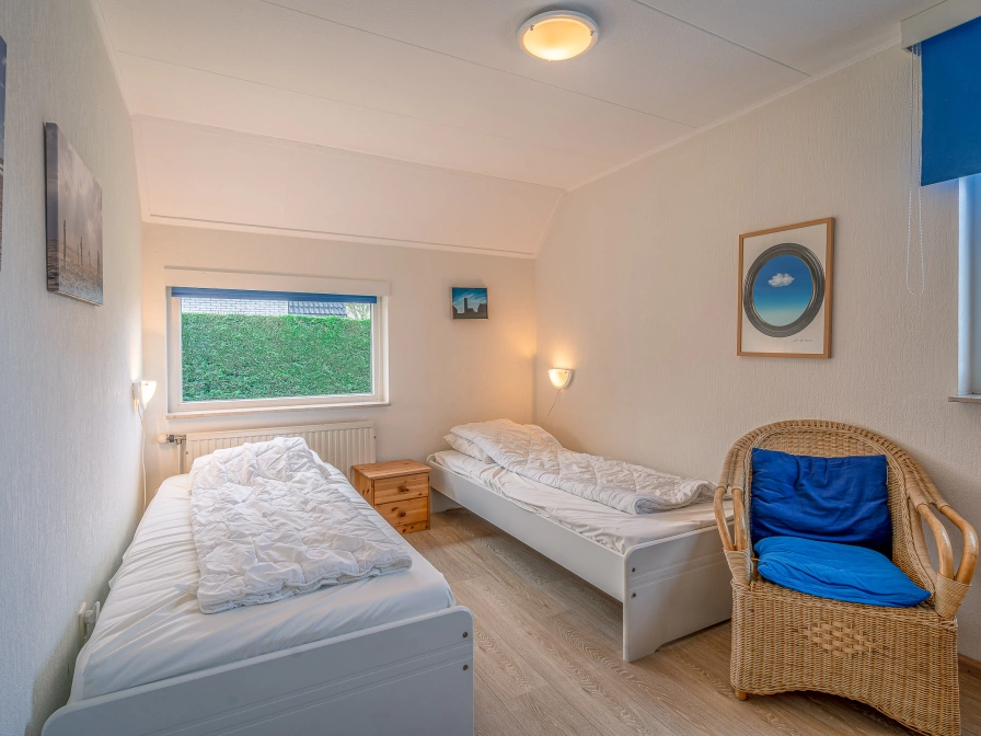 The living room of this detached holiday home has a sitting area with a wood-burning stove, TV and audio equipment. There is also a dining area. The open kitchen is equipped with a dishwasher and microwave. On the ground floor is a bedroom with 2 single beds and a washbasin. There is a separate toilet. The storage room contains a washing machine and dryer. On the upper floor are two bedrooms, each with 2 single beds. One of the bedrooms has TV. The bathroom has a bath, separate shower, sink and toilet. This holiday home has a spacious garden with lots of privacy. The terrace is located on the south. Garden furniture is available.