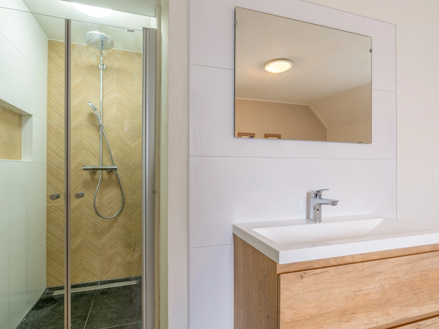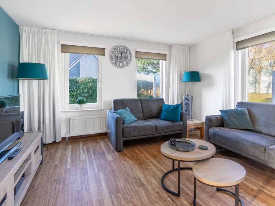 The living room of this detached holiday home has a sitting area with TV, music system and a dining area with a dining table for 6 people. The open kitchen is equipped with a dishwasher, combination microwave, fridge-freezer, filter coffee machine and a Senseo coffee machine. On the ground floor is a bedroom with a double box-spring bed, sink and a TV. There is also a bathroom, which is equipped with a walk-in shower and sink. There is a washing machine and dryer in the storage room. On the upper floor there are two bedrooms, each with 2 single box-spring beds and a TV. The bathroom has a whirlpool, separate shower, sink and toilet. There is a separate toilet on the ground floor. This holiday home has a spacious garden on the water. Garden furniture is available.