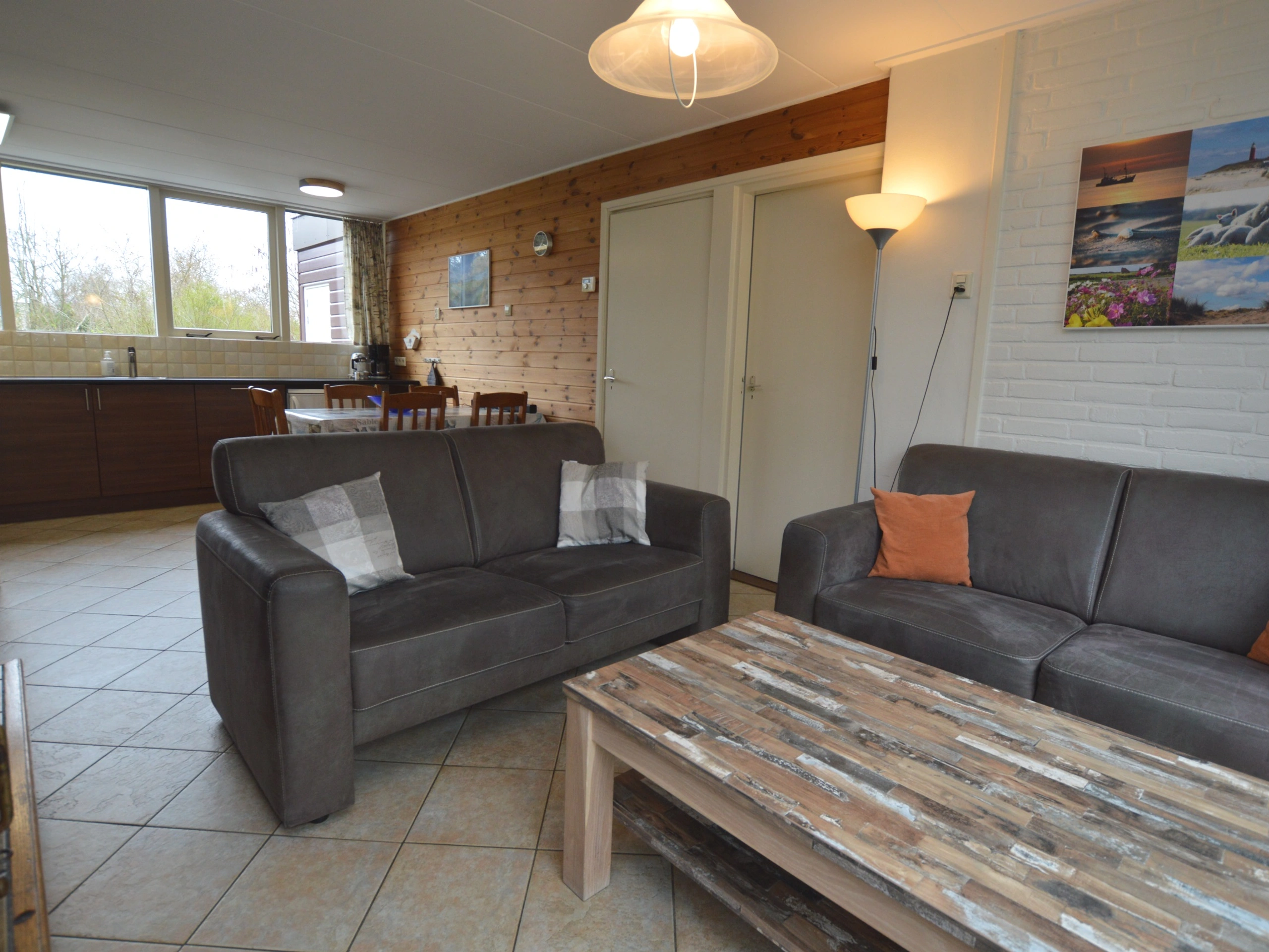 The living room of this detached bungalow has a dining area and sitting area with a fireplace and TV. The open kitchen is equipped with a refrigerator, 4-burner gas hob, combination microwave and coffee maker. There are three bedrooms, one with a double bed with separate mattresses. There is a bedroom with 2 single beds. The third bedroom has a bunk bed. The bathroom has a shower, sink and toilet. This bungalow has a garden with a south-facing terrace. Garden furniture is available.