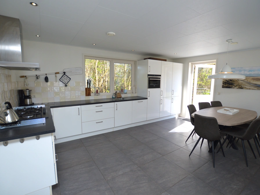 This comfortable holiday home has three bedrooms, one bedroom on the ground floor with a double bed (two single mattresses). On the first floor there are two bedrooms, one with two box-spring beds and a normal single bed. The second bedroom upstairs has a bunk bed. There are a total of seven single (synthetic) duvets available. The bathroom has a shower and a sink. There is a separate toilet on the ground floor. The second bathroom on the first floor has a bath, shower, sink and toilet. The luxurious open kitchen is fully equipped with, among other things, a dishwasher, combination microwave, Senseo, filter coffee maker, electric kettle and mixer. There is a fridge with freezer compartment. There is a smart television in the living room. There are also smart TVs in two of the three bedrooms. The bungalow also has a washing machine, tumble dryer and high chair. The large garden with terrace, barbecue and shed faces south and there is parking for two cars at the holiday home. A private free WiFi network is available throughout the house. There is no smoking in the house.