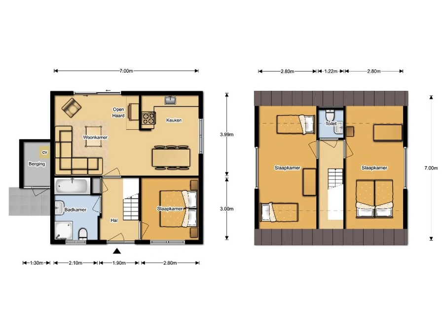 The living room has a dining area and sitting area with fireplace, digital TV, DVD player and audio player. The kitchen is equipped with a refrigerator, combination microwave, dishwasher and Nespresso. There is a bedroom with two single box-spring beds. The bathroom has a bath, separate shower, sink and toilet. On the upper floor there are two bedrooms with two single box-spring beds each. A second toilet is available. This holiday home has an enclosed garden with terrace and garden furniture.