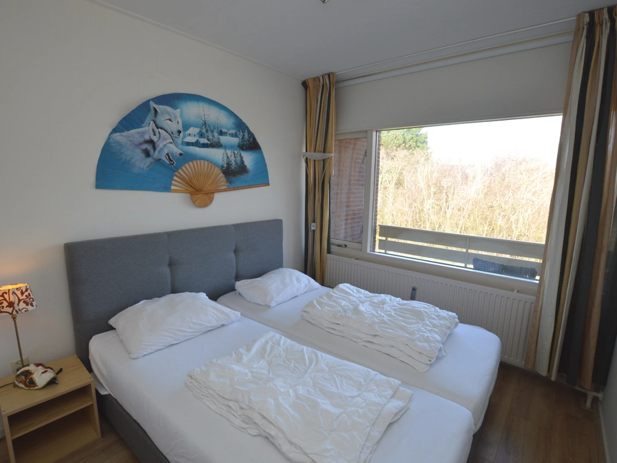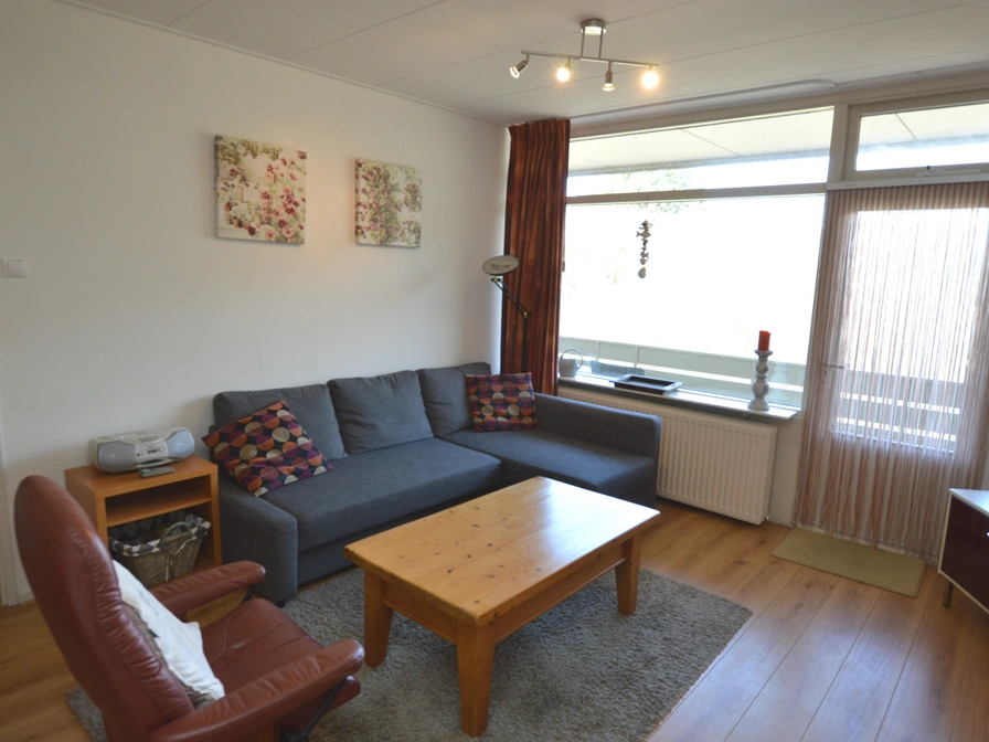 This neat apartment is located on the first floor of the apartment building. The living room has a sitting area with television. The open kitchen is equipped with a refrigerator with freezer, 4-burner induction hob, combination microwave, Senseo, coffee maker and dining area. The bedroom has two single beds. The bathroom has a shower, sink and toilet. This apartment has an enclosed terrace on the east side. Garden furniture is available.