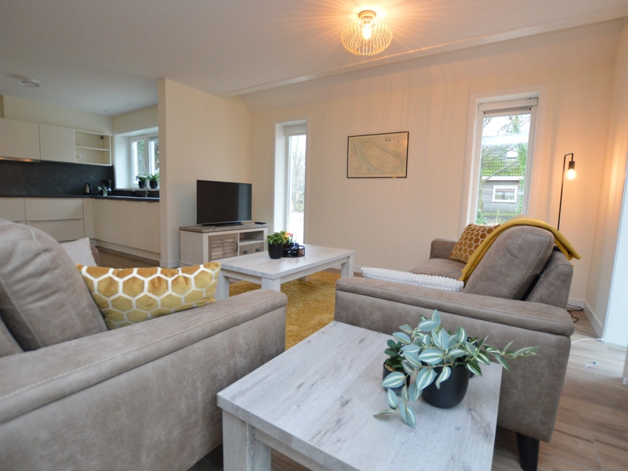 This holiday home has been built energy-neutral and is fully equipped. It has 3 bedrooms, 1 downstairs and 2 on the first floor. There are 6 single beds with 6 single duvets. There are two bathrooms, 1 on the ground floor right next to the bedroom with shower and sink and 1 on the first floor with shower, toilet and sink. In addition, there is also a separate toilet downstairs. There is also a washing machine and a high chair. The kitchen is complete and includes a fridge with freezer compartment, dishwasher and combination microwave. The house has its own wireless internet connection and there is cable TV. The house has a large garden with garden house, a terrace and private parking.