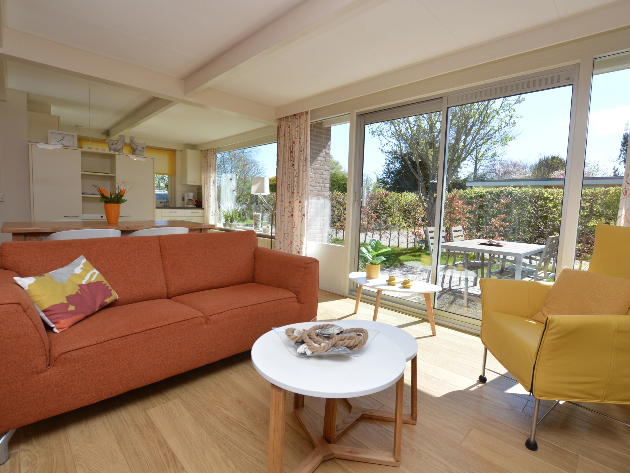 The living room of this semi-detached bungalow has a dining area and sitting area with TV, DVD player and radio / CD player. The television has an extensive channel package. The open kitchen is equipped with a dishwasher, refrigerator, microwave, oven, Nespresso, Senseo and filter coffee maker, kettle, mixer and toaster. There are two bedrooms, each with 2 single beds, one of which is very spacious. There are a total of 4 single duvets. Through the bedroom you come through a connecting door to an extra family room with sliding doors and a view of the garden. There are two bathrooms (1 shower room with underfloor heating), both with shower, toilet and sink. This bungalow has a large enclosed garden on the south with a BBQ, terrace, garden lighting, adjustable chairs and parasol. The large storage room offers space for four bicycles (with charging points), an extra fridge with freezer compartment (you), a high chair and bath and beach chairs.