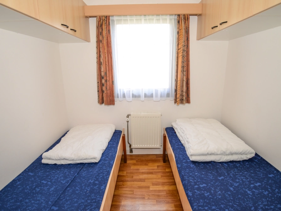 Chalet type D has an entrance, cozy living room with sitting area, dining area and smart TV with apps such as Netflix. The open kitchen has a microwave, coffee maker and kettle. Both bedrooms have two single beds (80x200, with 2 duvets 140x200). In the bathroom you will find the shower, sink and toilet. Terrace with garden furniture.