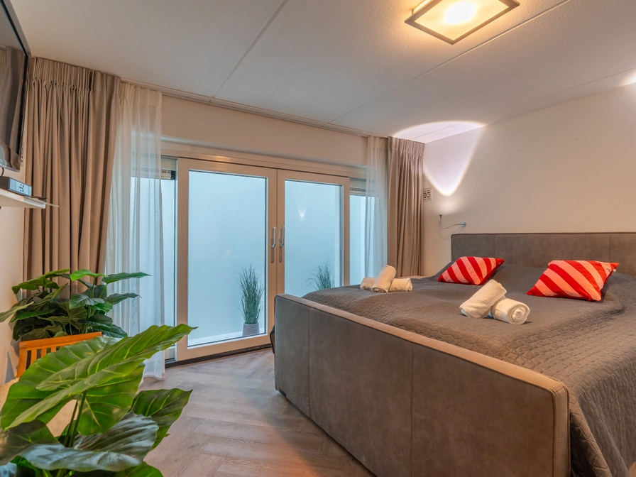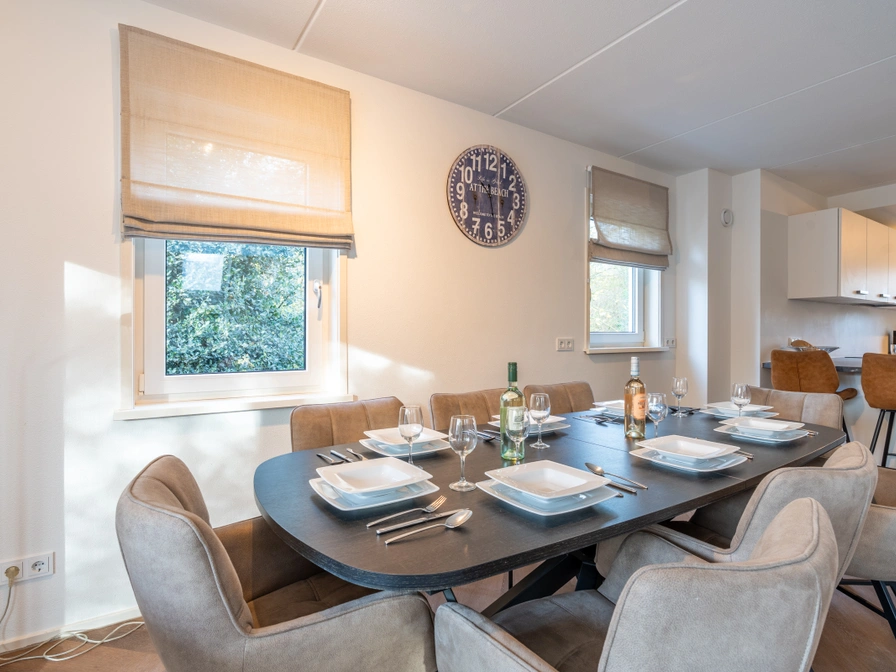 The living room has a sitting area with gas fireplace, LED TV, DVD player and radio/CD player. The open kitchen is equipped with a dishwasher, convection oven, coffee maker, Senseo, citrus press, a breakfast bar and a dining area. There is a washing machine and dryer in the utility room. On the upper floor there are two bedrooms, each with two single box-spring beds. The bathroom has a walk-in shower, sink and toilet. In the basement is the third bedroom with a box-spring bed and TV. A glass wall provides sufficient daylight. The second bathroom has a double bath, walk-in shower and toilet. Het Oude Dijkje has a large, sheltered garden with several terraces. The garden is partly enclosed by a fence and a watercourse. Garden furniture is available.