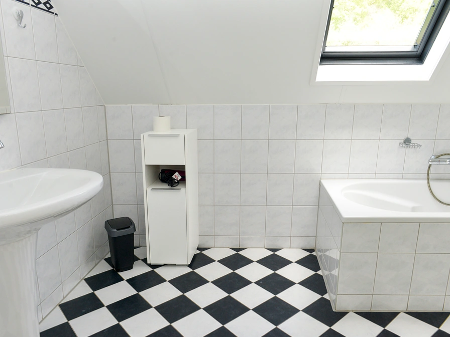 The living room has a sitting area with TV, radio and DVD player. There is also a dining area. The open kitchen is equipped with a 4-burner gas stove, refrigerator, oven, microwave, dishwasher, coffee maker and Senseo. The utility room has a washing machine and dryer. On the ground floor there is a bathroom with a shower, sink and toilet. On the top floor are two bedrooms, each with 2 single box-spring beds. There is a bathroom with a bath and toilet. This holiday home has a large garden with a terrace and garden furniture. There is a balcony on the first floor.