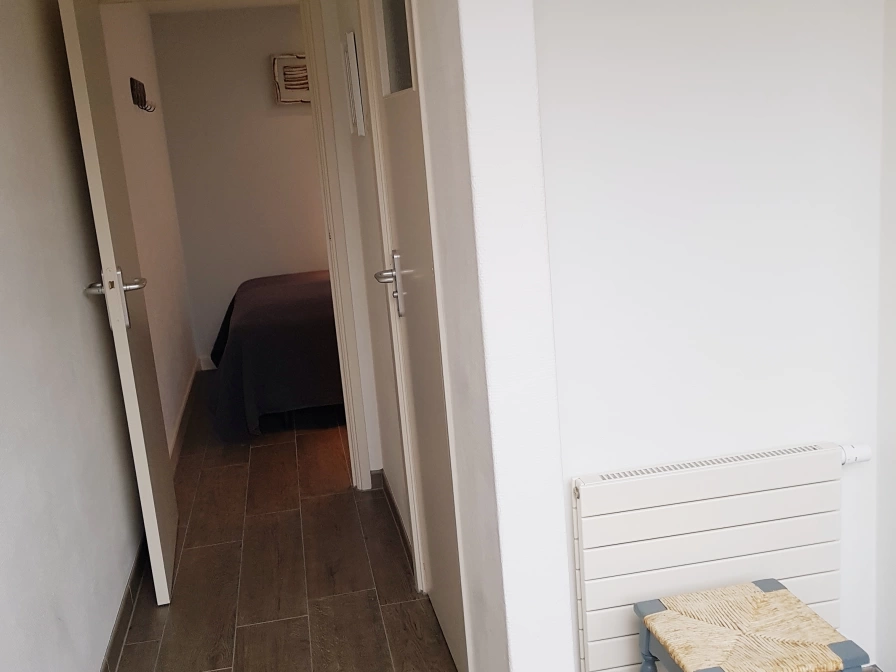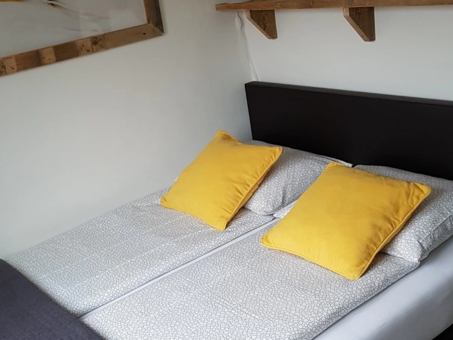 This holiday home is quietly situated behind the owner's house. The living room has a sitting area with TV and dining area. The open kitchen is equipped with a combination microwave. There are two bedrooms, each with a double box-spring bed (160x200). The bathroom has a shower and sink. There is a separate toilet. This holiday home has a spacious enclosed garden facing south. Garden furniture is available.