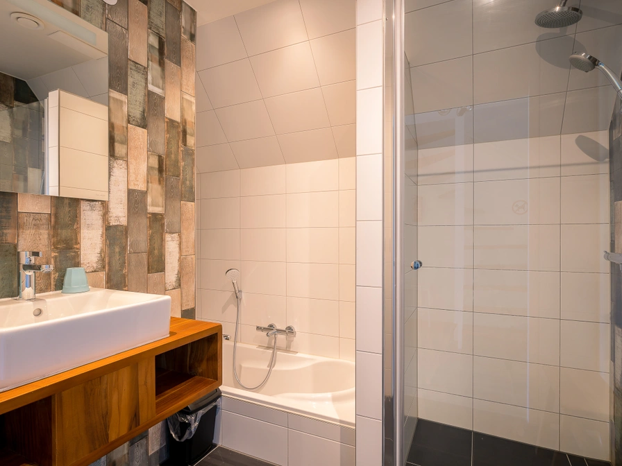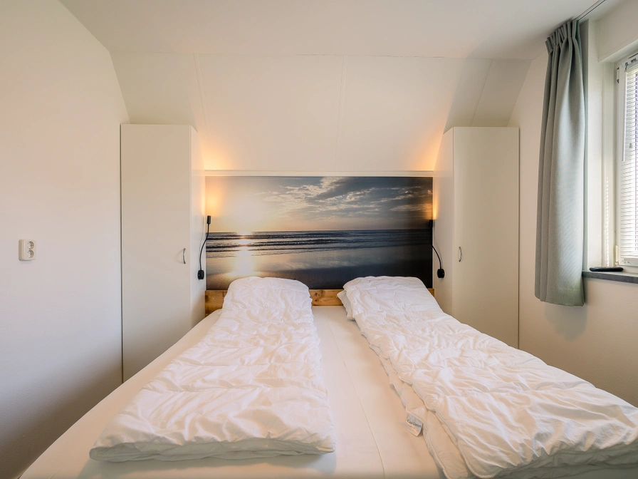 Tastefully and modern furnished 6 person bungalow situated in a quiet location. Beach and nature reserve a few kilometers away. The modern living room has a sitting area with smart TV. There is a dining area with a large dining table for 6 people. The open kitchen is fully equipped with various equipment, such as a filter coffee maker, refrigerator with freezer, microwave and dishwasher. There is 1 bedroom on the ground floor with a double bed and TV. On the first floor there are two bedrooms, each with two single beds. One bedroom with sink. All bedrooms in the house have comfortable box spring beds. The bathroom is located on the ground floor and is equipped with a bath, large shower with rain shower and a vanity unit. There is a separate toilet in the hall. High chair and cot available. The living space is directly connected to the terrace through sliding doors. The terrace is equipped with garden furniture and parasol. The garden is located on the west and is completely fenced.