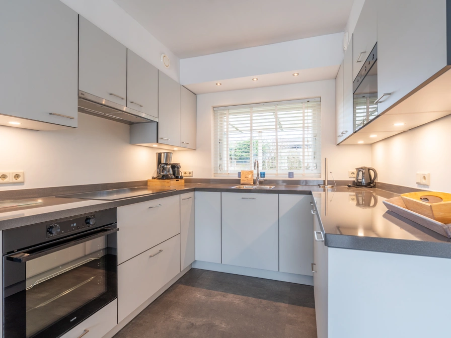 The living room has a sitting area with a wood-burning stove and TV. The open kitchen is equipped with a dishwasher, oven and dining area. The three bedrooms have box-spring beds. There are two bathrooms with a shower, sink and toilet. One of the bathrooms also has a bathtub. This holiday home has a spacious garden with several terraces with garden furniture and a garden shed.