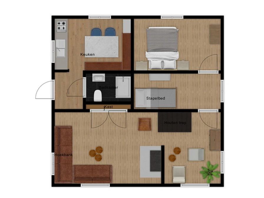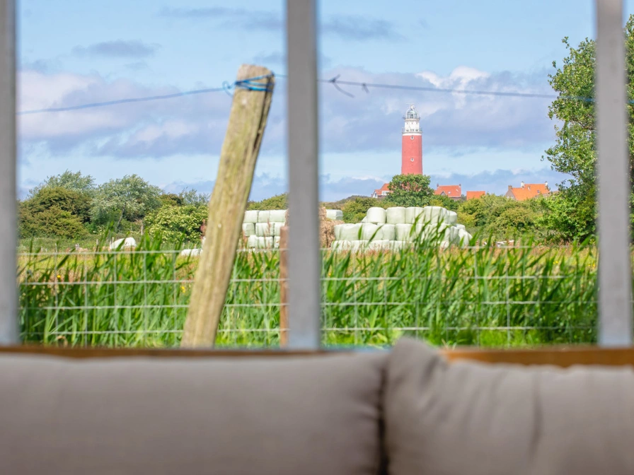 Entrance hall. The ground floor has a living room with two sitting areas with a spacious fireplace and Smart TV and corner sofa. The cozy kitchen with dining area is equipped with a refrigerator (incl. freezer compartment), a combination microwave, a dishwasher and a Nespresso / Senseo machine. On the ground floor there are two bedrooms: a master bedroom with a double bed (160 x 200) and a children's bedroom with a bunk bed (90 x 200) in the walk-through room. On the first floor there is another double bedroom, with a double bed (160 x 200) and a large Velux skylight. The bathroom has a spacious walk-in shower, sink and toilet. You can use the changing table, baby camping bed and a baby chair for free. This holiday home has a large, fully enclosed garden all around with a lounge sofa, parasol, barbecue, fire bowl and wood stove. And a view of the lighthouse!