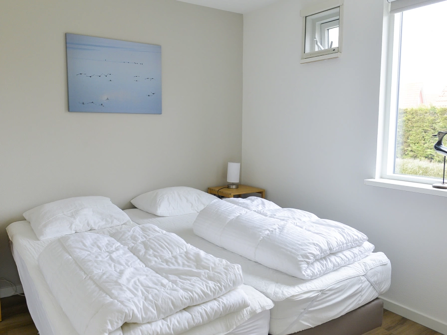 Entrance, living room with sitting area, dining area and TV. Open kitchen with fridge freezer, combi oven-microwave, dishwasher, kettle, Nespresso machine and coffee maker. Bedroom with 2 single beds. Bathroom with walk-in shower and vanity unit. Separate toilet. On the first floor are two more bedrooms, each with 2 single beds. Your detached holiday home has a spacious garden with a terrace and garden furniture.