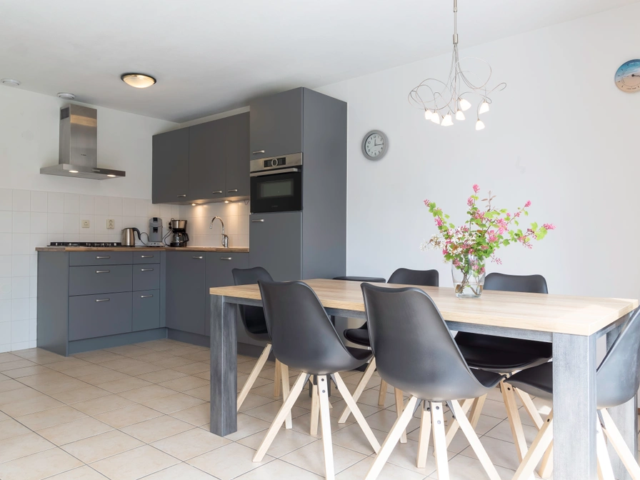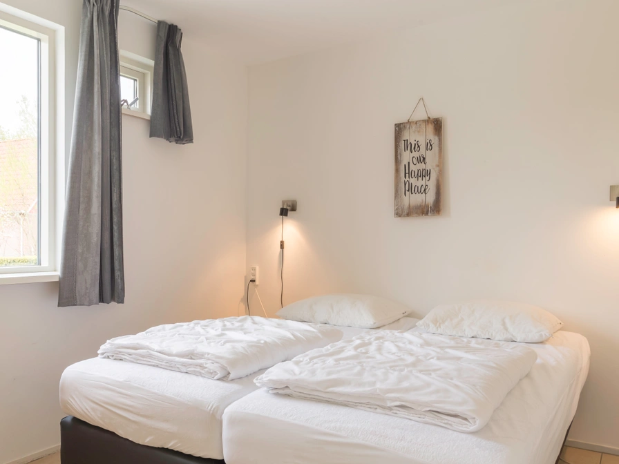 Entrance, living room with sitting area, dining area and TV. Open kitchen with fridge with freezer, oven, dishwasher, Senseo, kettle and coffee maker. Bedroom with 2 single beds. Bathroom with shower and sink. Separate toilet. On the first floor are two more bedrooms, each with 2 single beds. Your detached holiday home has a spacious garden with a terrace and garden furniture.