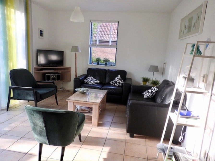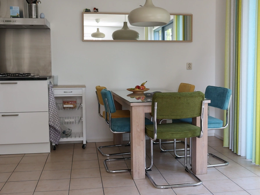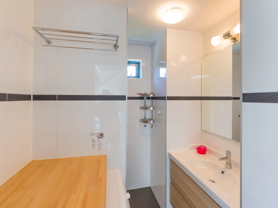 Entrance, living room with sitting area, dining area and TV. Open kitchen with fridge freezer, oven, dishwasher and Senseo and kettle. Bedroom with 2 single beds. Bathroom with shower and sink. Separate toilet. On the first floor there are two more bedrooms, each with 2 single beds and each with its own washbasin. Second toilet on the first floor. Your detached holiday home has a spacious garden with a terrace and garden furniture. Garden shed with charging point for electric bicycles