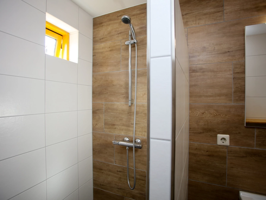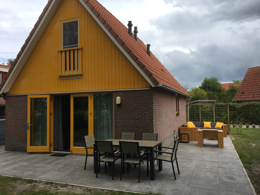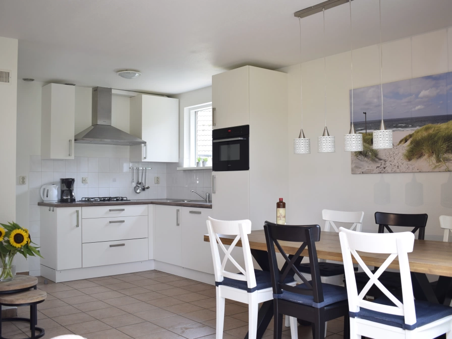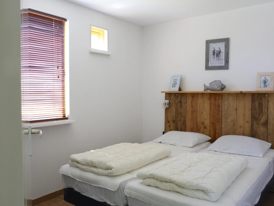 Entrance, living room with sitting area, dining area and TV. Open kitchen with dishwasher, refrigerator with freezer, microwave, filter coffee machine, Senseo. Bedroom with 2 single beds. Bathroom with shower and sink. Separate toilet. On the first floor are two more bedrooms, each with 2 single beds and each with its own sink. There is also a second toilet on the first floor. Storage room with charging point for electric bicycles. Your detached holiday home has a spacious garden with a terrace and garden furniture.