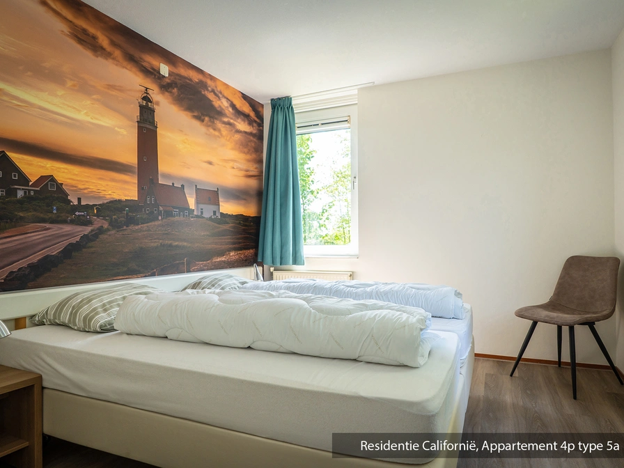 Residence Californië is a quietly located four-star apartment complex on the west side of Texel, near De Koog. The apartments are located on the edge of the forest area, which is part of the Duinen van Texel National Park. Several of the cycling and walking routes through this protected nature reserve start practically on the doorstep. Within 5 minutes you cycle to the vast North Sea beach (1.5 km). Seaside resort De Koog is about 3 kilometers away. In the cozy village center you will find plenty of shops, terraces, cafés and restaurants. In the vicinity of Californië are several attractions and places of interest, such as museums, riding stables and an indoor swimming paradise.